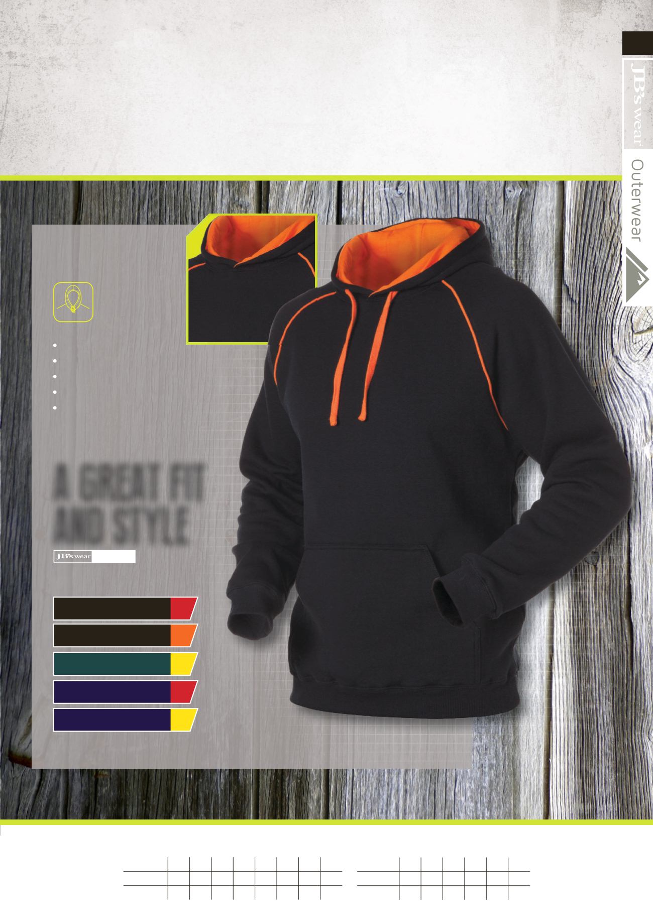 contrast coloured trim inside the hood, piping along the raglan sleeves,