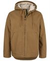 Details Classic fit Outer fabric - 100% cotton duck canvas 385gsm Lining - 100% polyester shephard fleece 340gsm Quilted sleeve for easy wear Internal sleeve rib cuff for extra warmth Front kangaroo pocket re-enforced with rivets Right hand side zip pocket Left hand internal pocket Center front metal zip placket,with internal storm flap Pleats on each side of the back for easy movement Triple stitching on seams for durability Drop tail back hem
