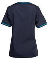Details Classic fit 65% polyester 35% cotton 180gsm V-neck top, set in sleeves, side vents, size identification colour loop sewn next to main label Contrast colour tape on collar and sleeve hem Two lower pockets, left hand pocket with pen insert Left hand chest pocket with loop inside