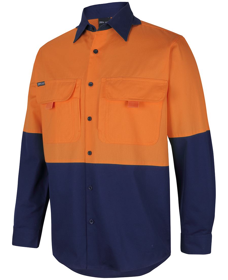 Details Classic fit 100% Cotton Ripstop – 150gsm Complies with Standard AS 4399:2020 for UPF Protection (UPF 50+) Complies with Standard AS/NZS 1906.4:2023 and AS/NZS 4602.1:2011 Day only Complies with Standards AS 4602.1:2024 Day only Wide back yoke with concealed mesh, cooling gussets at underarms Double front pocket with button down flaps and pen insert Contrast panel on front, lower back and sleeve Curved hem with back tail styling Two piece collar with extended neck protector
