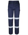 Details Urban fit 280gsm Cotton/Elastane stretch twill for comfort and movement Heavy duty Polyester/Cotton pocket bag for extra durability Cargo pocket and pen pocket with hook pile closure on right leg Cargo pocket with flap closure on left leg Two back hip pockets Two front slant pockets Two rows JB's stretch reflective tape in biomotion configuration. Reflective tape comply to AS/NZS 1906.4:2023 Complies with Standard AS 4399:2020 for UPF Protection Size 72 only available in Navy