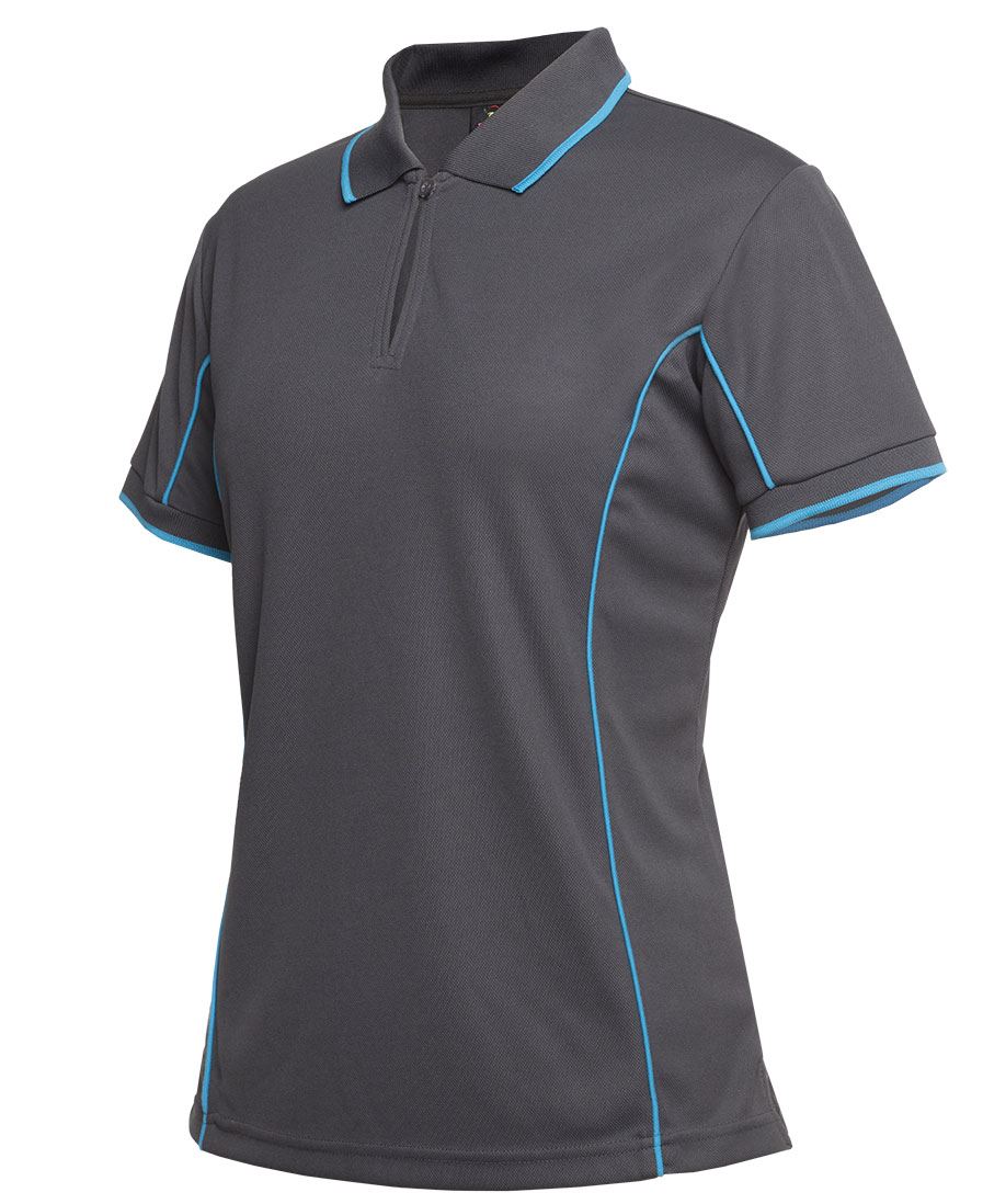 Details Classic fit 100% Polyester, 160gsm pique knit fabric Podium Cool™ moisture wicking fabric designed to help keep you cool and dry Ladies style features the placket in a distinctly stylish 1-button design Straight hem with side splits Easy care fabric, Quick drying Complies with standard AS 4399:2020 for UPF protection