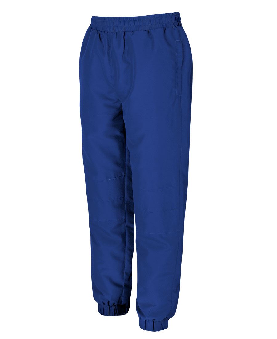Details Classic fit 100% polyester 125gsm Fully lined with mesh and taffeta Two side pockets One hip pocket with zip closure Kids size with internal knee patch Fully elasticated waistband with drawcord Elasticated cuffed hem