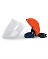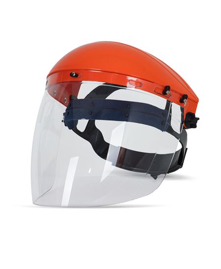 Details HDPE browguard with easy click & pull ratchet Foam lined sweatband 2mm thickness Toric Polycarbonade visor (400 x 205mm) provides 180-degree protection and unobstructed views Complies to AS/NZS 1337.1:2010 Extra high impact resistance Splash resistance Certified by SAI GLOBAL SMK 40054 Fully assembled, individuall hanging packed