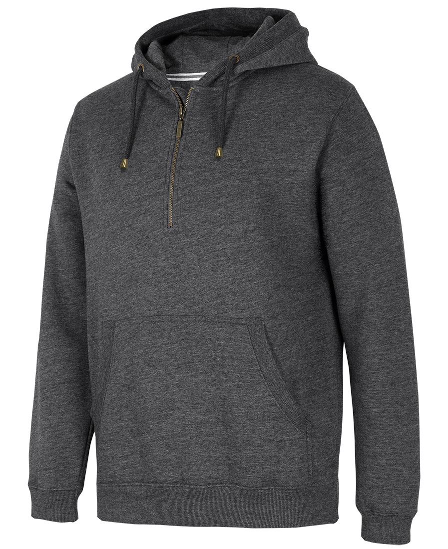 Details Urban fit 80% Cotton for comfort, 20% polyester for durability Charcoal Marle: 54% Polyester, 46% Cotton Graphite Marle: 61% Cotton, 39% Polyester Black Marle: 58% Cotton, 42% Polyester 310gsm brushed fleece 1/2 brass zip placket opening Front lower kangaroo pocket with 2x2 rib at opening 2x2 rib cuffs and hem